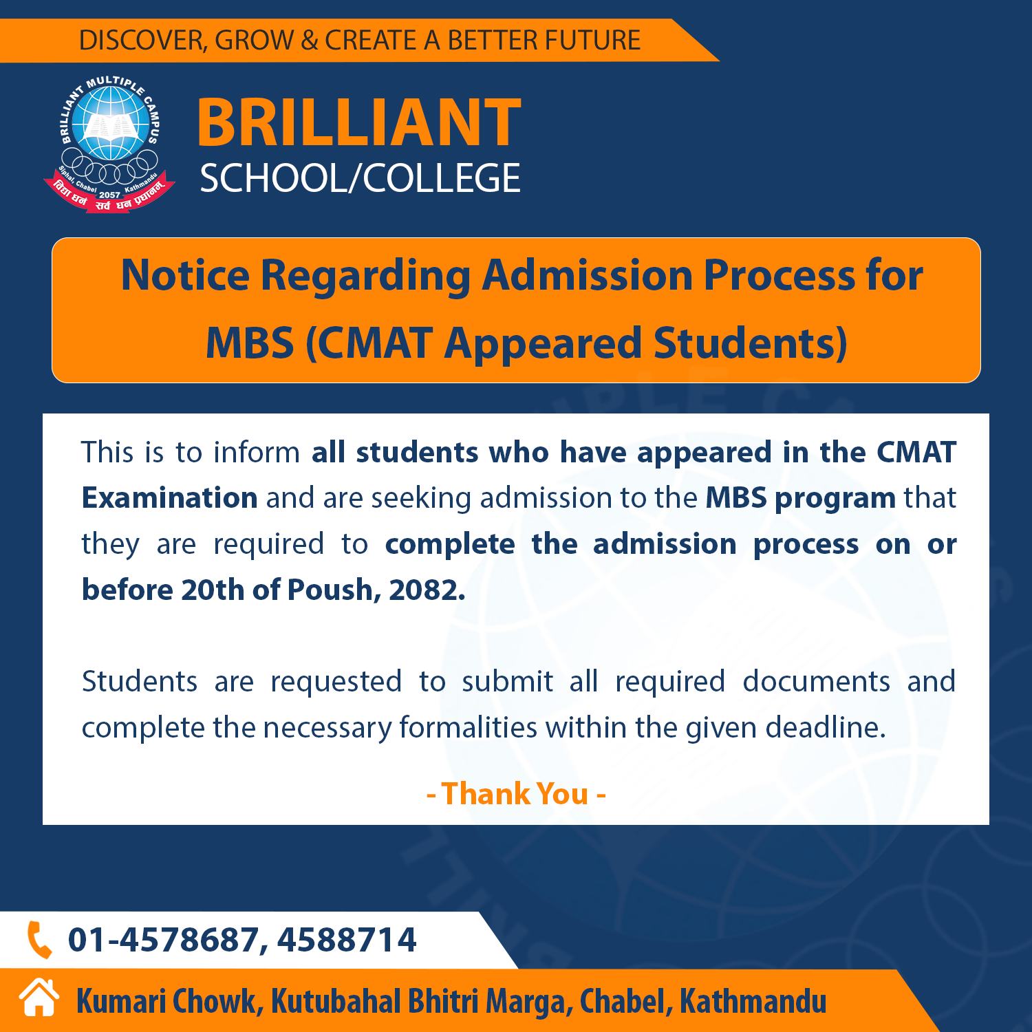 Notice for New admissions – MBS (Cmat Appeard Students)